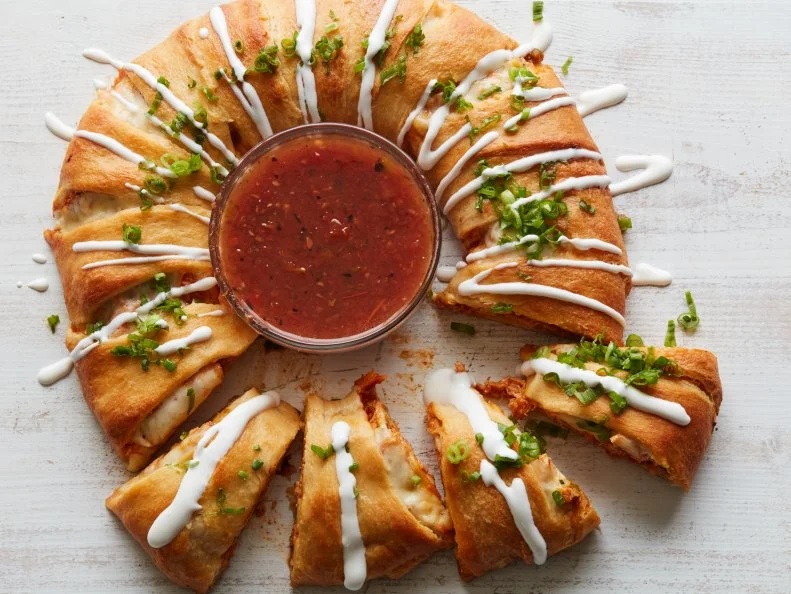 It’s the biggest game of the season and you’re no doubt expecting a houseful of hungry fans. Even if you’ve enlisted the help of your guest and are planning a potluck-style spread of all the classics (like chili, chicken wings and fun desserts) you’re going to need to make a few snacks and small bites for your party, too. You’ll find all the recipes you need in this roundup. We’ve got dips, jalapeño poppers, pigs in a blanket and more. A guaranteed winner? This flaky, golden ring of crescent dough, packed with all the flavors of a cheesy, chicken enchilada. It’s portable (so your guests can eat by the television!) and sure to please — making it perfect for parties.