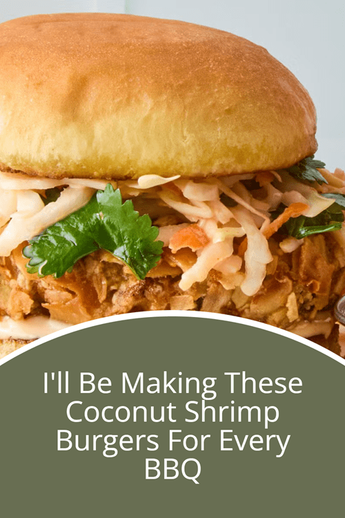 A hot, crispy platter of coconut shrimp is easily in my top 5 favorite appetizers, so naturally, I jumped at the chance to turn it into a burger. To make this unforgettable app-turned-entrée, ground shrimp are spiked with garlic, ginger, and scallions, then coated with coconut flakes. They’re deep-fried until golden brown, creating a giant, flavor-packed version of the OG. The crispy patties are layered onto a toasted potato bun, topped with cabbage slaw, and smothered in spicy-sweet chili mayo to mimic the flavor of the dip that usually tags along with coconut shrimp.