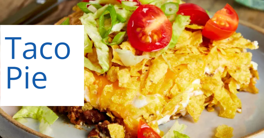 This taco pie is a quick, easy meal that is very filling. Some people will also top it with regular taco toppings such as lettuce, tomatoes, black olives, etc. It also is great as leftovers for lunches. Serve with taco sauce.