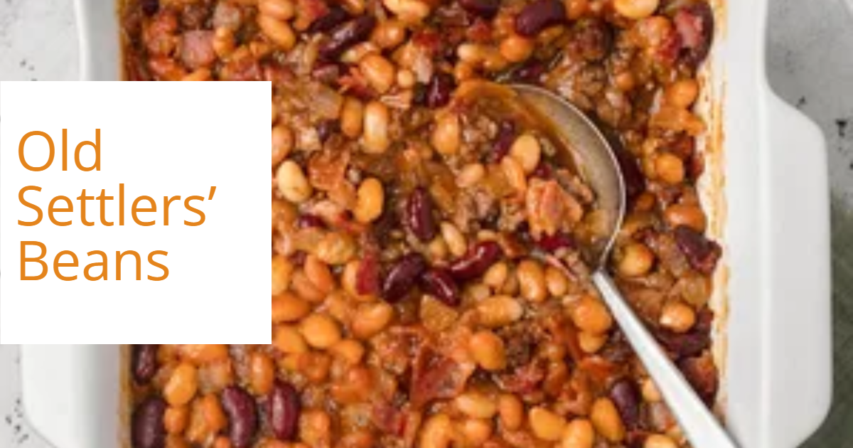 Old settlers’ beans are a meaty baked bean casserole, similar to calico beans and cowboy beans. The name is a nostalgic nod to early American settlers who relied on filling, rustic one-pot meals with simple ingredients.