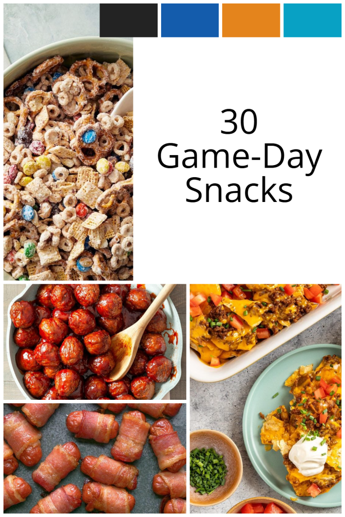 All these recipes are perfect for easy, mindless snacking while watching the game. Expect plenty of bacon-wrapped recipes. Enjoy hot dips like spicy buffalo chicken and creamy spinach artichoke. Try slightly elevated snack mixes such as spiced nuts, white chocolate Chex Mix, and pizza-flavored oyster crackers. No game day is complete without sliders, mini meatballs and nacho recipes, so there are plenty of those, too.