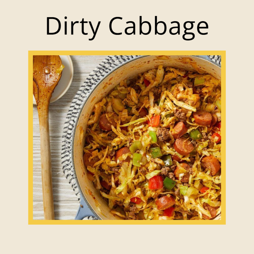- Seasonings: The dirty cabbage is seasoned with a spicy combination of Cajun seasoning, smoked paprika, cayenne pepper, salt, pepper and crushed red pepper flakes.
