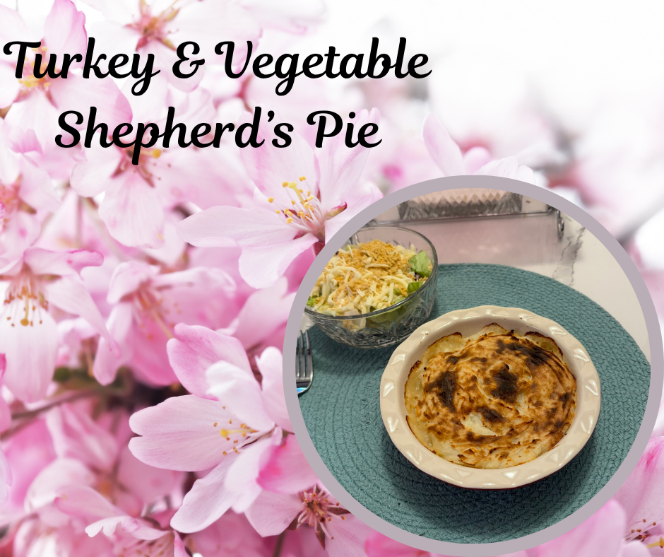 This weekend’s heart-healthy comfort food dinner is Turkey and Vegetable Shepherd’s Pie. This is a simple meal that comes together easily and is perfect for a Saturday evening dinner.